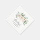 Personalized napkins make your 18th birthday party table decor special. White roses are nestled in sage green eucalyptus leaves.