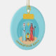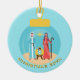 Personalized Nativity Blue and Gold Christmas Ceramic Ornament