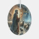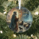 This nativity shepherd scene shows a bright heavenly north star shining in the night sky.