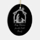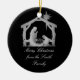 Black and white elegant Christmas ornament. Babe in a manger, nativity scene, star of Bethlehem. Script calligraphy typography. Makes an excellent Christmas gift for friends and family.