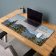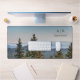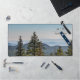 Personalized Blue and green Nature Mountain Forest Desk Mat with green forest trees and blue sky. Perfect for mountain lovers and forest lovers alike, will make a beautiful personalized desk mat for your home office.