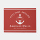 The Nautical "Welcome Aboard" boat mat design features a stylish navy blue and white coastal aesthetic, accented with a boat anchor. Personalize it with your boat's name, location city, state, and established date for a unique touch. This custom mat makes a fantastic gift for boat owners, perfect for welcoming guests aboard.