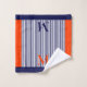 Create a personalized oasis in your bathroom with our monogram bath towel set. The sleek and minimalist design in navy blue and orange on a white background adds a touch of modern coastal elegance. Personalize it with your initials and create a sophisticated haven in your home. This also makes for the perfect personalized vacation gift for a loved one.
