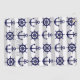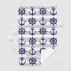 This decorative design features both a dark navy blue anchor and a boat wheel with white stripes. The nautical illustration creates a modern and unique golf towel with personalized text and background colour.