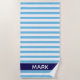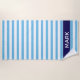 Personalized Navy Blue And White Cabana Stripe Beach Towel