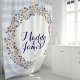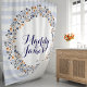 Élevez votre décoration de salle de bain avec ce rideau de douche charmant et personnalisé. Le design présente une délicate couronne florale dans des teintes orange et blanc, encadrée par des bandes bleu marine. Personnalisez-le avec les noms d'un couple en écriture élégante pour un style unique et chic. Fabriqué en tissu de haute qualité résistant à l'eau, ce rideau de douche est à la fois élégant et fonctionnel.