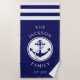 Personalized Family Name Navy Blue Nautical Anchor Beach Towel.