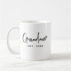 Celebrate a beautiful new chapter with this minimalist Grandma Est 2028 coffee mug. Featuring an elegant black script font and a delicate heart accent, this modern design is the perfect way to announce a pregnancy or surprise a first-time grandmother. Easily customize the year and title (Nana, Mimi, Abuela) to create a unique, personalized keepsake. A thoughtful Mother’s Day or birthday gift for the stylish grandma-to-be in your life.
