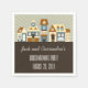 This fun cute design features a row of whimsical houses. The colour scheme for this design is brown, blue, gold and cream. Personalize these disposable beverage napkins with for your housewarming party. They are a great way to add a unique touch to your party and celebrate your new first house, home or location.