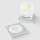 A stone coaster for newlywed's home featuring Mediterranean tile patterns, elegant script calligraphy, and a playful watercolor gelato ice cream design. Inspired by Italian coastal home decor and the sunny charm of the Amalfi Coast, this modern stylish bar accessory captures the spirit of la dolce vita with bright blue and lemon citrus yellow tones and a relaxed Mediterranean summer aesthetic. Perfect for adding a chic, cheerful accent to a newlywed home, kitchen, or living space.