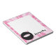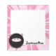 For lovers of all things ninja, this design features an adorable cartoon pig dressed in a black ninja outfit with only the pig's ears, eyes, nose and trotters visible. The border of the notepad shows a starburst pattern in shades of pink. Customize the text to create a personalized notepad for the ninja lover. sgb01