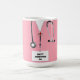 Creative nurse appreciation or nursing school graduation keepsake gift mug for the grad featuring pink hospital scrubs. Edit text to add name of nurse.