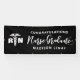 Decorate for a nurse graduation party with this Personalized Nurse Graduate Congratulations Custom Banner. It has a trendy minimalist design on black background, white medical caduceus symbol with "RN." The text is "congratulations nurse graduate" followed by the personalized name. It has modern hand lettered script. CLICK THE PERSONALIZE FURTHER OPTION AND ENTER NAME.
