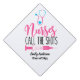 Add a name, nurse specialism, class of details to this nurse themed graduation, graduate cap topper. This nurse grad cap topper features a pink and blue graphic of a stethoscope and a syringe/ needle and reads 'nurses call the shots!'. Suitable for any nurse, male or female, RN, Surgical, Scrubs etc.