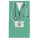 Creative design featuring hospital scrubs and stethoscope. Edit text to add nurse or doctor's name.