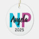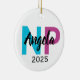 This personalized ceramic Christmas ornament is the perfect gift for a graduating nurse, newly licensed RN, or Nurse Practitioner. Featuring bold teal and pink RN or NP letters, your custom name in elegant script, and the graduation year 2025, this ornament makes a meaningful way to honor hard work and dedication.