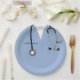 Creative graduation, celebration or medical-themed birthday party plates featuring blue nursing scrubs, stethoscope and Swiss Army knife design. Edit text to add name of nurse.