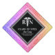 Show off your nurse graduate day with this Personalized Nurse Rainbow Glitter Modern Script Graduation Cap Topper. It is an elegant and modern design with a faux colourful rainbow glitter background and black and white frame border. A white medical caduceus symbol and "RN" is on the upper area of the cap topper. The lower area has "class of" custom nurse graduate's year, personalized name and college name.