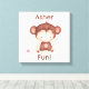 Bring joy and playfulness to any space with this adorable personalized monkey wall art! Featuring a cheerful brown monkey illustration and the affirmation "<name> is fun," this canvas or poster is perfect for kids’ rooms, nurseries, or playrooms. Designed to inspire smiles and positivity, it’s a wonderful gift idea for birthdays, baby showers, or any special occasion. Add a lively and personal touch to your child’s space with this charming artwork!