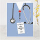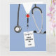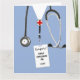 Creative nursing school grad card featuring blue hospital scrubs. Edit text to add the year and the name of your favourite nurse grad.