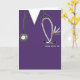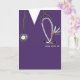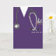 Creative nursing school graduation card template featuring purple hospital scrubs. To personalize edit text to add name of nurse graduate.