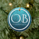 Personalized OB Ocean Beach, CA Blue Bkg Christmas Ceramic Ornament