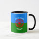 Personalized official Romany gypsy traveller flag, O styago le romengo in romani, of the Roma Gipsies with a red wagon wheel on a green and blue background. This modern flag represents the blue open sky and the green grass of the world with a wheel of travel and the roaming life of gypsies, represented by a 16 spoke red shakra. Easily personalize this with your own text, name or monogram to the name templates to create a unique custom gift for someone of proud Romany gypsy heritage or cultural roots. Or visit the CUSTOMIZED GIFTS STORE for matching products and more gypsy traveller gifts.