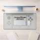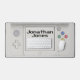 Your name and title highlights this old school handheld electronic gaming device desk mat.