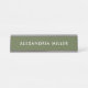 Make a statement with this personalized desk name plate featuring a modern white sans serif font on an olive green background. Customize with your name or business name for a professional and stylish touch to any workspace.
