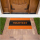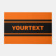 Personalized Orange Black Racing Stripes Door Mat. Makes a great gift for fans of racing stripes.