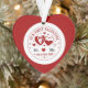 Commemorate a beautiful milestone with our Personalized "Our First Valentine" Ceramic Ornament. This elegant, round ornament features a charming red and white design centred around two darling hearts—one dressed in a formal tuxedo and the other in a graceful gown.