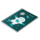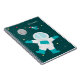 This cute boy's personalized notebook has an out of this world space theme! The background has a dark teal colour with lots of yellow, white, and grey stars in the background. There is an astronaut on the bottom with a moon with a flag at the top. To the right of the moon, there is a rocket ship. On the top right, you can easily customize the name with your own.