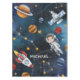Featuring illustrations of outer space activities and icons as stars, a space rocket, an astronaut, moon, satellite, and other planet system elements Add a name by clicking on the "Personalize" link above