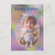 The design features a personalized photo in an elegant oval shape along with customizable blue typography that reads "Happy Easter" on a colourful rainbow background!