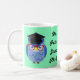 This cute PhD graduation mug features a blue owl wearing a mortar board (graduation hat) and glasses. It bears the graduate's title and qualification and can be personalized with any name. The background color and the font style can also be customized.