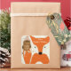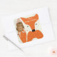 Oh so Big Cute Eyes Owl and Fox Barn Wood Forest Christmas Red Rustic Knitted Hats on Cutest Little Brown Owl and a Orange Sweater on the Fox to keep them warm.  Personalized with your names and you message of Love.  Ivory Barn Wood Grain Pattern on a Square Sticker