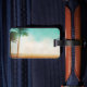 Sometimes we can't get to the beach fast enough - let this pretty Beach Bound luggage tag with a beautiful palm tree lined beach keep your eye on the prize... the beach!
