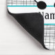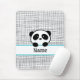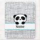 A cute mouse pad with a black, white and aqua turquoise blue panda doodle design and the name or text of your choice.