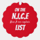 Create a festive keepsake with this lightweight paper ornament featuring your photo on the front and the humorous “ON THE N.I.C.E Now I Can Explain LIST” message on the reverse side. Designed to be hung on the Christmas tree or tied to a gift box, it’s a charming way to add laughter and personal warmth to your holiday celebrations.