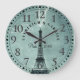 A personalized Paris themed Eiffel Tower clock with couples names, Paris, and the year.