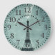 A personalized Paris themed Eiffel Tower clock with your name in the phrase "in Paris" Add your name. Vintage photo of Eiffel tower at night with lightning.