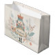 This charming nutcracker gift bag brings a soft vintage look to your holiday gifting. The pastel shades of pink, blue, and gold pair beautifully with delicate floral accents for a cozy Christmas feel. Personalize the name with just a few clicks.
