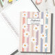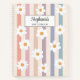 This cute sketchbook features white daisies on a striped background in pastel colours. Easily customizable with your name. Great for Back to School or as a gift.