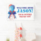 Personalized patriotic red, white and blue balloons and ribbon welcome home military banner. Perfect for welcoming your soldier back home after a tour of duty. Great homecoming banner for your loved one.