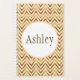 Add modern personality with flair. Customizable centre name text with peach and gold chevron stripe background pattern
