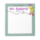Our Personalized Pencil Scribble Green Unlined Notepad features a cartoon pencil drawing a squiggly line. The notepad consists of a solid border colour with a white box for your handwritten notes to parents, students, and other faculty. Personalize and order your teacher's notepad today!