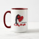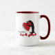 The product design features a penguin holding a big red heart. This charming animal illustration makes a cute funny and unique coffee cup with personalized text - Gift idea for Valentine’s Day, birthday, anniversary, or any other romantic occasions.