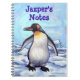 Cute Penguin personal notebook features our fun Emperor penguin art from our Animal Parade line digitally painted by our talented children's book artist, Traci Van Wagoner. This adorable penguin is standing on in an icy background with icebergs and a textured blue sky behind. Make a new friend today and keep your notes in your very own penguin notebook. Join in on the fun and collect the entire Penguin Stationery Set. This playful animal notebook is great for anyone who loves penguins, polar animals, and whimsical animal art.