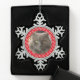 This snowflake shaped Christmas ornament allows you to add a custom photo of your pet inside a cute red and gold paw print holiday pattern! Celebrate your pet's first Christmas or memorialize them forever with this beautiful ornament.