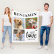 Featuring three of your favourite photos of your beloved dog, this blanket beautifully showcases the special moments you share. The phrase "All You Need is LOVE and a Dog" is elegantly printed, capturing the essence of your bond. To make it even more personal, we offer the option to add a monogram and your pet's name, ensuring this blanket is truly one-of-a-kind.